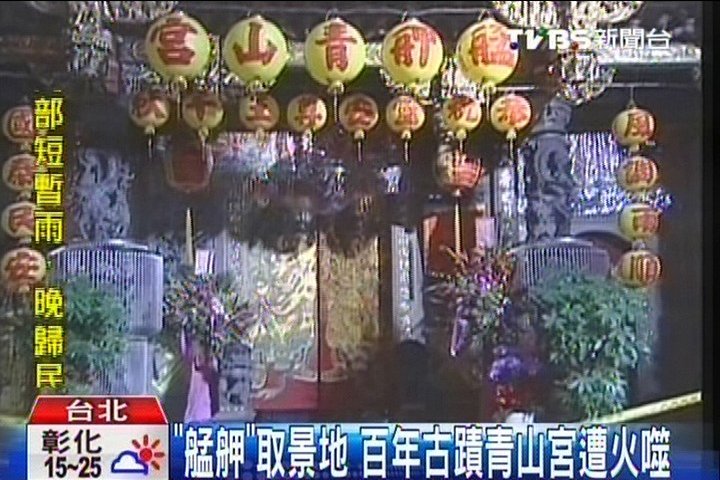 電影《艋舺》里取景場地就是在青山宮,因為有將近160年歷史,被臺灣列為3級古跡,卻不幸發生火警。雖然最近正準備出巡的神轎也遭受波及,廟方也表示會照常舉行,所幸這場火并沒有造成人員傷亡,算是不幸中的大幸。(中國臺灣網 周劍)
