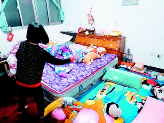 小女兒指著右側地上的毯子說,“那是哥哥睡的地方,我睡中間的床、媽媽睡左邊。”(臺媒圖)