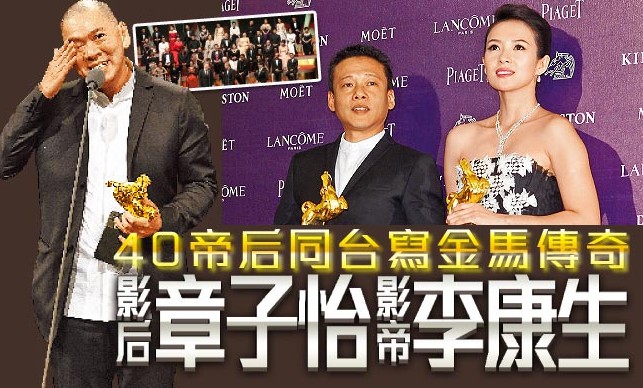 中國臺灣網(wǎng)11月24日消息 據(jù)臺灣媒體報道,第50屆金馬獎昨(23)日揭曉,蔡明亮以《郊游》獲最佳導演獎,并助親密伴侶李康生首度稱帝,臺灣電影在21個獎項中共摘6座,在“金馬50”里程碑上勉強及格。34歲的章子怡不負眾望,以《一代宗師》封后,是她從影15年首奪金馬。評審團主席李安力挺《郊游》失敗,最佳影片由“黑馬”新加坡小品《爸媽不在家》攔截。走過半世紀,金馬50頒獎典禮最高潮是40位帝后同臺頒獎,留下溫馨又感人的經(jīng)典歷史畫面。