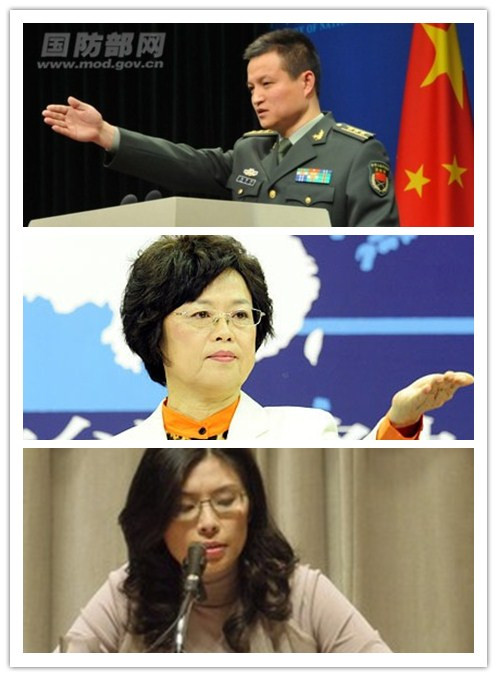 從上至下:國(guó)防部發(fā)言人楊宇軍、國(guó)臺(tái)辦發(fā)言人范麗青、臺(tái)灣行政主管部門(mén)發(fā)言人鄭麗文。(合成圖)