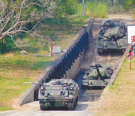 測試中的CM21裝甲運兵車(前)。(臺灣《中國時報》資料照)