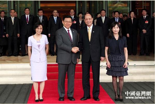 海協(xié)會(huì)會(huì)長(zhǎng)陳德銘(前左二)與海基會(huì)董事長(zhǎng)林中森(前右二)。(中國(guó)臺(tái)灣網(wǎng)圖)