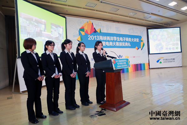 20日下午,由中國臺灣網(wǎng)(m.zhaoqun5.com)、海峽兩岸互聯(lián)網(wǎng)交流委員會、中華臺灣MIT正品推廣協(xié)會主辦的“2013海峽兩岸學(xué)生電子商務(wù)大講堂暨電商大賽頒獎典禮”在京舉行。圖為臺灣區(qū)總決賽第一名獲獎團隊分享參賽心路歷程與收獲。(中國臺灣網(wǎng) 于斯文 攝)