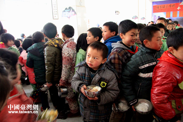 冷水鎮小學經過三年教育實驗,學生精神面貌發生巨大變化,圖為學生們在食堂就餐。(中國臺灣網 李徽 攝)