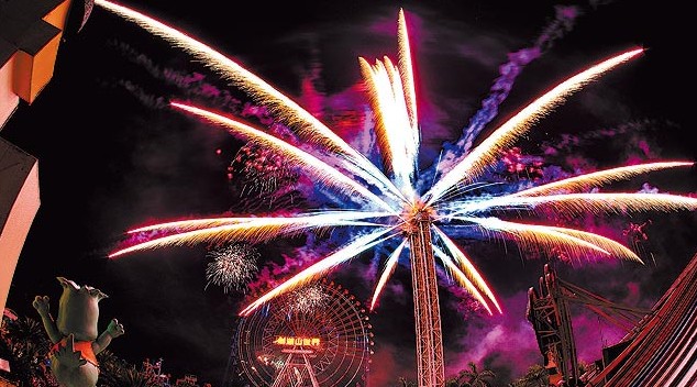劍湖山跨年煙火秀,摩天輪與高空煙火呼應。(臺媒圖)