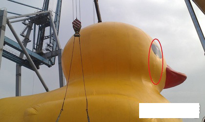 主辦單位今天上午9時(shí)已在碼頭進(jìn)行最后準(zhǔn)備工作,9時(shí)30分開始進(jìn)行吊掛作業(yè),進(jìn)度順利,大黃鴨現(xiàn)已吊掛下水,民眾可在海洋廣場(chǎng)遠(yuǎn)處眺望大黃鴨。
