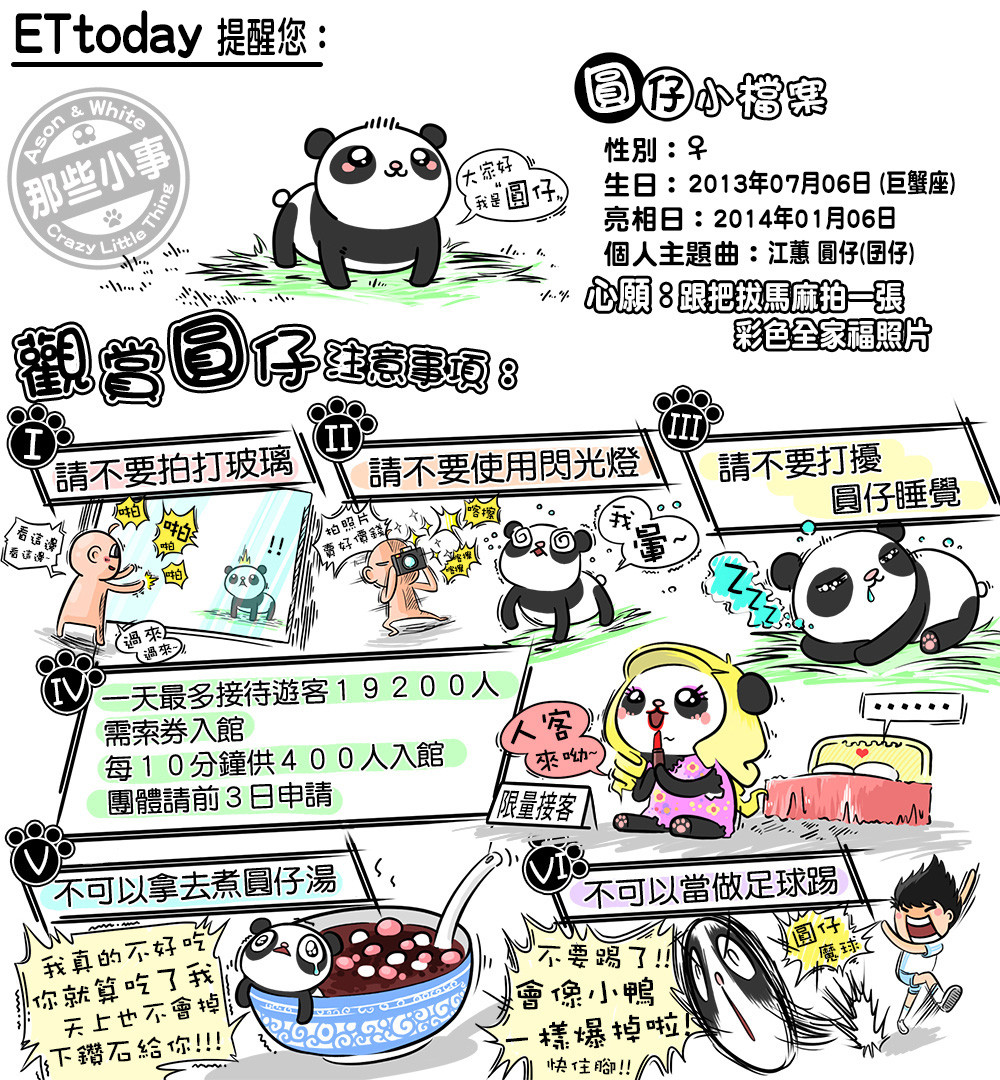 特制版的參觀圓仔注意事項(xiàng)漫畫,希望藉由活潑的方式提醒大家愛護(hù)圓仔。(臺(tái)媒圖)
