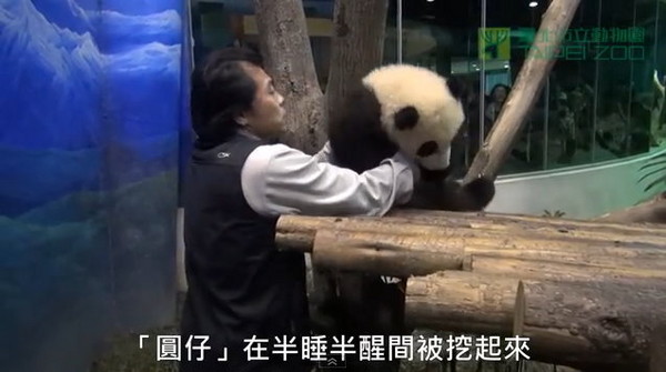 圓仔昨(6)日上午9時首次“上班”見客,撐了1個小時左右便呼呼大睡;直到下午5時10分下班,半夢半醒的圓仔被保育員抱走,揮揮小肥腿和大家說再見。回到欄舍,圓仔伸展一下四肢,打個哈欠,便睡眼惺忪地去找“水盆君”。