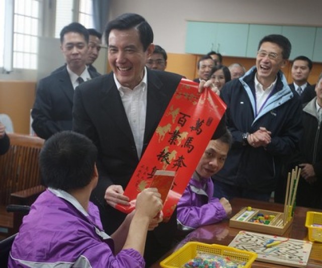 中國臺灣網1月13日消息 據臺灣今日新聞網報道,馬英九周日(12日)前往陽明教養院發春聯,在院長孫麗珠告訴院生春聯上的字都是馬英九親自提的時候,馬英九卻說,“有3個字不是我寫的”;讓大家正一臉狐疑,馬才解釋說:“吳敦義。”