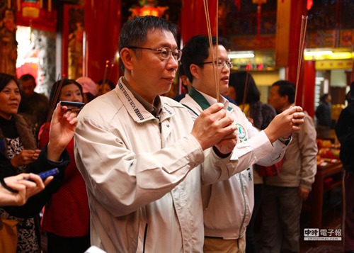 柯文哲今天前往松山慈佑宮參拜,并稱自己是來懺悔的。(圖片來源:臺(tái)灣《中時(shí)電子報(bào)》)