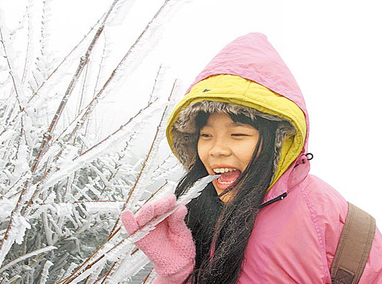 女游客看到霧淞直言像棒冰,忍不住咬了一口。來自臺(tái)媒
