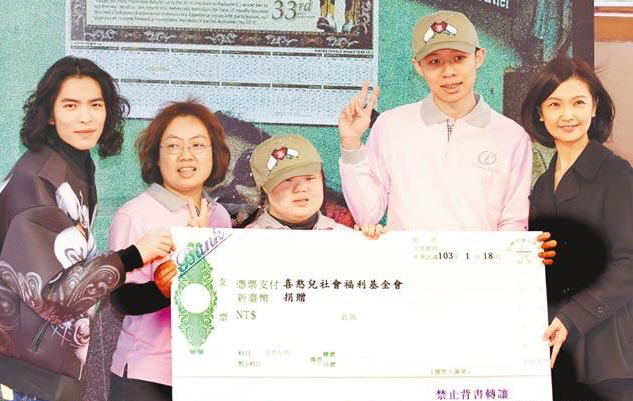 蕭敬騰(左)日前參加簽書(shū)會(huì)時(shí),捐出版稅給喜憨兒等弱勢(shì)團(tuán)體。(資料照片)