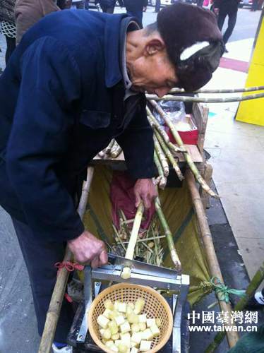 湖南特產甜甘蔗。圖為路邊買甘蔗的老爺爺。(中國臺灣網 高斯斯 攝)