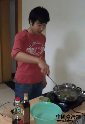 中國臺灣網(wǎng)員工李培剛過年煮餃子。(中國臺灣網(wǎng) 王思羽 攝)