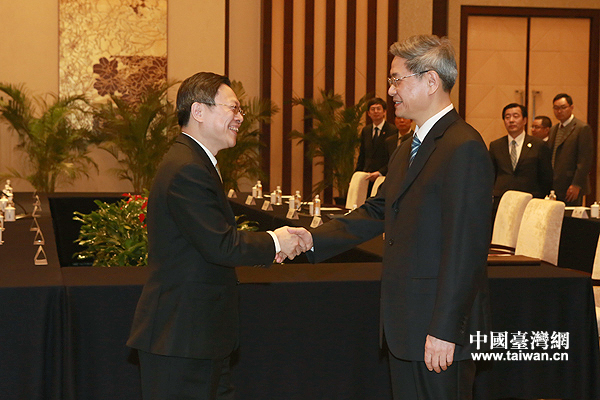 國臺辦主任張志軍2月11日下午在南京與臺灣方面陸委會負責人王郁琦舉行雙方兩岸事務主管部門負責人首次正式會面。(中國臺灣網 田云鵬 攝)