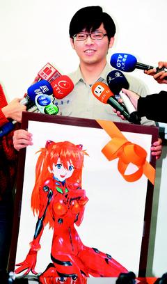 臺北建中滿級分學生陳彥宇熱愛動漫,昨天展示他畫的“新世紀福音戰士-明日香”。(來自臺灣《聯合報》)