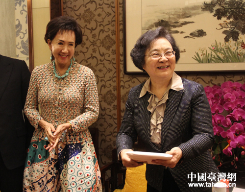 林文漪向連戰夫人連方瑀贈送禮物。(中國臺灣網 王怡然 攝)