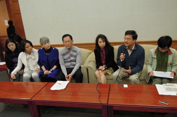 臺(tái)灣同性戀團(tuán)體拜會(huì)國(guó)民黨“立委”丁守中(左四)。(臺(tái)媒圖)