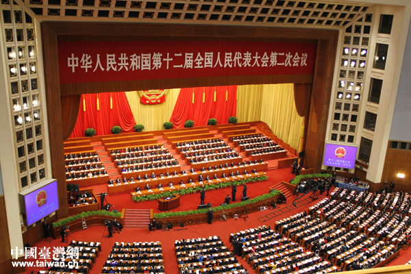 今天上午9時,第十二屆全國人民代表大會第二次會議在北京人民大會堂拉開帷幕。(中國臺灣網(wǎng) 高斯斯 攝)