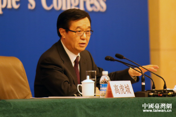 今天上午,商務部部長高虎城就“商務發展與對外開放”的相關問題回答中外記者的提問。(中國臺灣網 王思羽 攝)
