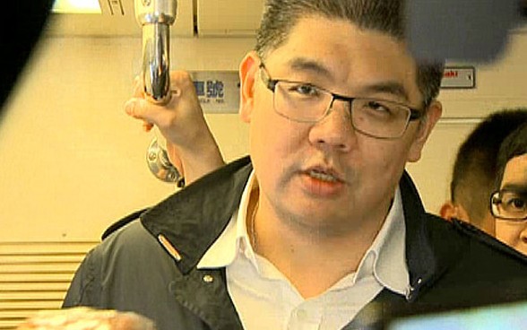 搭捷運談政見恐違法,連勝文幕僚急制止。(臺媒圖)