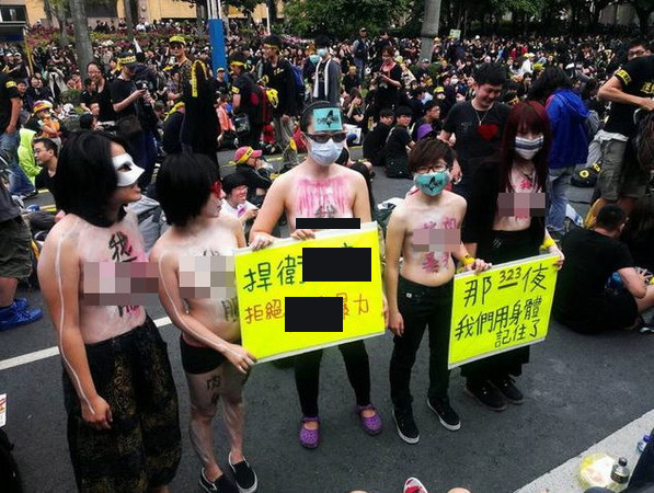 凱道出現5名女子裸上身抗議,大膽行為激起網友熱烈討論。(圖片來自臺媒)