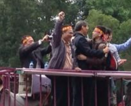 中國臺灣網4月1日消息 據臺灣媒體報道,中華統一黨總裁白狼張安樂今日下午率領四、五百位群眾來到忠孝東路、鎮江街口,宣稱要與反服貿學生對話。其間,還發生一位初中生上白狼的宣傳車,宣稱他是被議場學生趕出來的,反服貿學生欺負自己的同類很過分,連同類都互相殘殺。話畢,還與張安樂熱烈擁抱,張也說,歡迎你回到我們大家庭。初中生還伸出手拍拍張安樂肩膀,現場報以如雷的掌聲。