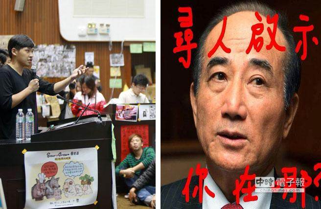 反服貿(mào)學(xué)生持續(xù)占據(jù)議場(左),網(wǎng)友貼出的尋人啟事(右)。(圖片來自臺媒)