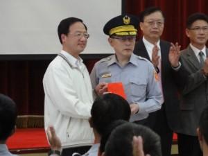 江宜樺今日下午慰問執勤警察,并發加菜金,幫警察加油打氣。(圖片來自臺媒)