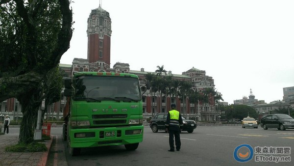 為了因應“330反服貿(mào)團體”上凱道,馬辦周邊也動員警力5000名,目的都是在維護馬辦的安全。而大動作的維安最終被一輛砂石車破功。(中國臺灣網(wǎng) 朱煉)