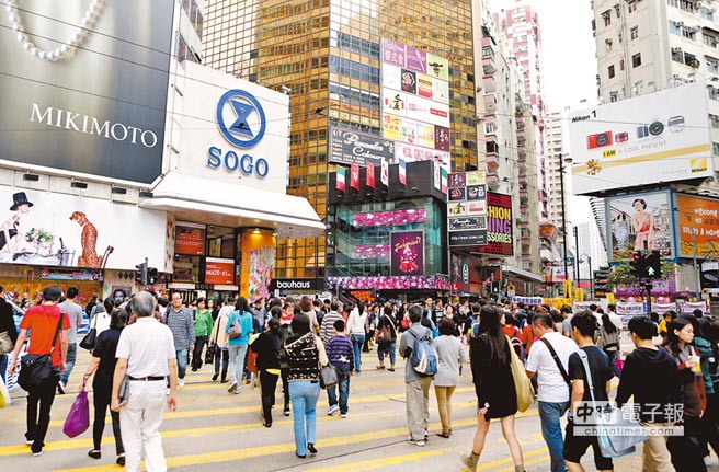 香港連續19年蟬聯“全球最自由經濟體”榜首,圖為行人穿過繁華的銅鑼灣街道。(圖片來源:新華社)