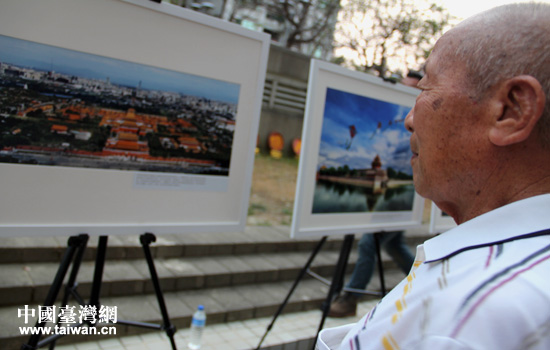 眷村臺灣老兵觀看魅力北京圖片展。(中國臺灣網 高斯斯 攝)