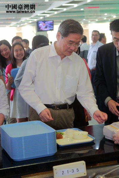 張志軍與臺(tái)灣學(xué)生一同排隊(duì)打飯。(中國臺(tái)灣網(wǎng) 于斯文 攝)