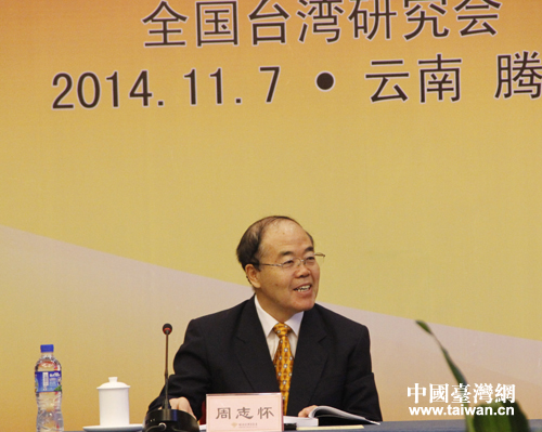 全國臺灣研究會執(zhí)行副會長兼秘書長周志懷在開幕式上致辭。(中國臺灣網(wǎng) 李杰 攝)