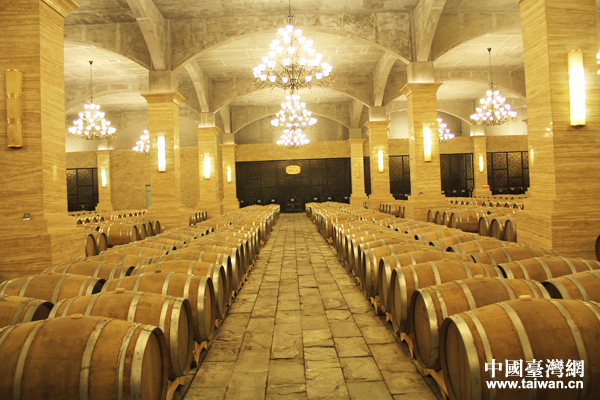 追尋著淡淡的酒香,采訪團一行來到功能性地下儲酒窖。酒窖窖深9.8米,常年恒溫在12-16℃,濕度保持在70%。酒窖由橡木桶貯藏區(qū)、罐儲區(qū)、瓶儲區(qū)、品酒區(qū)、私人定制區(qū)等五大部分構(gòu)成。