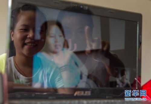 8月20日,在巴南區(qū)南彭街道將軍灣村,留守兒童楊渝(左)在大學(xué)生村官汪瓊的幫助下和母親視頻聊天。當(dāng)日,重慶市巴南區(qū)200多名大學(xué)生村官來到結(jié)對(duì)幫扶的留守兒童家中為他們補(bǔ)習(xí)功課,讓他們和在外地的家長視頻聊天,并為孩子們進(jìn)行心理輔導(dǎo)。本次活動(dòng)還專門為留守兒童準(zhǔn)備了一堂“收心”課,幫助孩子們提前適應(yīng)新學(xué)期的到來。新華社記者陳誠 攝