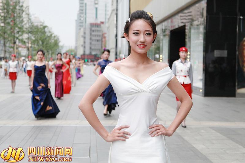 高顏值準(zhǔn)空姐“快閃”春熙路。