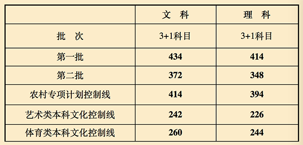 據(jù)上海教育考試院公布,2015年本市普通高校招生統(tǒng)一文化考試招生本科批次最低控制分?jǐn)?shù)線如下:一批本科文科434分,理科414分;二批本科文科372分,理科348分;農(nóng)村專項(xiàng)計(jì)劃控制線文科414分,理科394分;藝術(shù)類本科文化控制線文科242分,理科226分;體育類本科文化控制分?jǐn)?shù)線260分,理科244分。