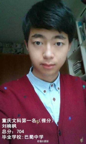 重慶2015文科狀元 劉楠楓 總分704分,其中數(shù)學(xué)150、英語146、文綜279