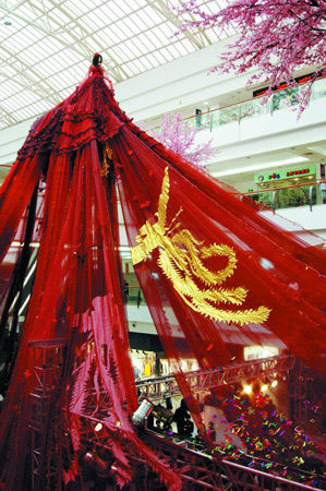 為了追趕奧運(yùn)風(fēng),商家可謂費(fèi)盡心思。昨天,一款長(zhǎng)達(dá)999米、帶有濃濃奧運(yùn)色彩的中國(guó)紅婚紗亮相天興·羅斯福中央大堂。這是由大連婚慶協(xié)會(huì)籌委會(huì)舉辦的今年婚慶流行趨勢(shì)現(xiàn)場(chǎng)展示活動(dòng)之一。