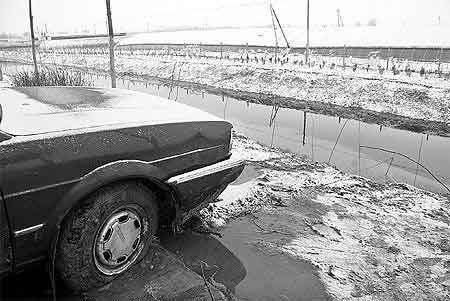 事故現(xiàn)場的附近,是安陽綠康蔬菜高科技示范園。職工楊某告訴記者,昨日上午8時(shí)30分,有兩名路人跑到院子里大聲求助,“有車落水了,趕緊來幫忙!”