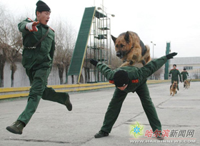 昨天,在黑龍江省邊防總隊哈爾濱警犬訓練基地里,50只警犬在訓導員的指令下追捕、突擊......這是哈爾濱警犬訓練基地針對警犬開展的“專項訓練”,培訓后的警犬將成為2008年奧運會的“保安”,承擔搶險搜救、搜毒、搜爆、搜捕等任務。