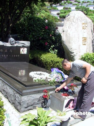 七月十二日,大陸居民赴臺旅游北京首發團在臺展開最后一天游覽行程。首發團來到位于臺北縣金寶山的鄧麗君墓園參訪。團員們紛紛向墓主人獻花鞠躬,表達追思之情。鄧麗君曾經風靡海峽兩岸,其甜美的歌聲給大陸同胞印象深刻。 中新社發 徐長安 攝
