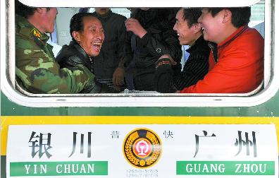 4月1日,幾位旅客乘坐銀川開往廣州的列車。寧夏日報記者 李徽 王曉龍 實習生 陳曦 攝