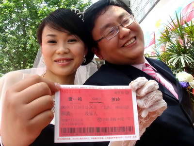 核心提示:19日中午,成都某酒樓一場特殊的儀式開始了。奇怪的是,前來的嘉賓人人手里拿著一張火車票。據記者了解,原來這可不是普通的火車票,而是新郎雷一鳴為婚禮專門設計制作的請柬。