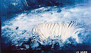 今年2月某晚,村民康萬年、高祖橋相約到南頓河去捉石蚌。當晚10點,康萬年突然發現河對岸的樹叢中有兩只閃閃發光的眼睛。康萬年取下背上的獵槍對其開了一槍,兩人跑去一看,原來是只老虎,老虎脖頸中槍,倒在地上死了。
