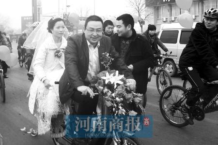 昨日,河南滎陽市民王順強用120輛自行車舉行了一個別開生面的自行車婚禮。