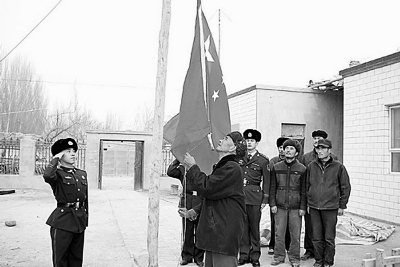 “他是一個像模像樣的升旗手。”當地人這樣評價胡達拜地。但胡達拜地走到“像模像樣”這一天,也并不是件容易的事。為了升好國旗,他開始了艱苦的專項訓練。而他的老師,就是村干部家的那臺黑白電視機。