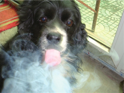 可卡狗經(jīng)常主動(dòng)要吸二手煙。李女士供圖