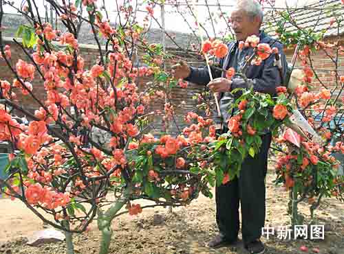圖為花農在給沂州海棠花人工授粉。 作者:夏洪雷
